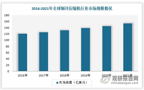 Os compressores de refrigeração são usados principalmente em equipamentos de aquecimento, ventilação e ar condicionado (HVAC) e sistemas de refrigeração residencial, comercial e industrial. A demanda do mercado é relativamente grande, representando cerca de 20% do tamanho do mercado. Os dados mostram que o tamanho do mercado global de compressores de refrigeração e ar condicionado foi de 12,1 bilhões de dólares americanos em 2016 e deverá atingir 15,4 bilhões de dólares americanos em 2021.